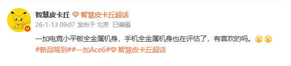 【CNMO科技消息】1月13日,数码博主@智慧皮卡丘 爆料称,一加将推出一款小屏电竞平板,采用全金属机身,还有一款新机同样也采用全金属机身。目前暂无更多关于一加新款小平板与这款新机的消息。